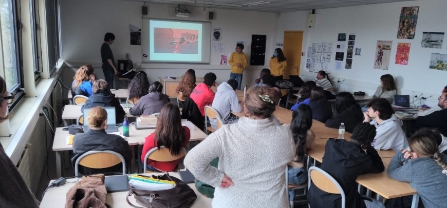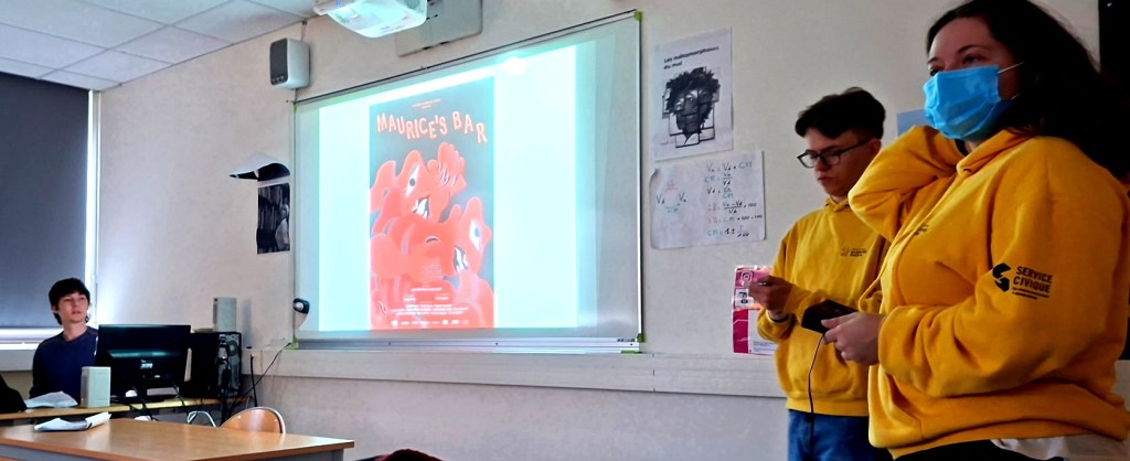 La présentation et les échanges ont été menés par les jeunes bénévoles en service civique de l’Association UnisCité. L’un d’eux est d’ailleurs l’un de nos anciens élèves, Nous avons tous ensemble, élèves et enseignants, pu échanger autour de l’importance de la tolérance et du devoir de mémoire, puisque cette œuvre est basée sur l’histoire vraie de Moïse « Maurice » Zekri, un juif algérien qui a ouvert en 1906 un des premiers bars gay à Paris, le Maurice’s Bar. Il a été assassiné à Auschwitz en 1942.