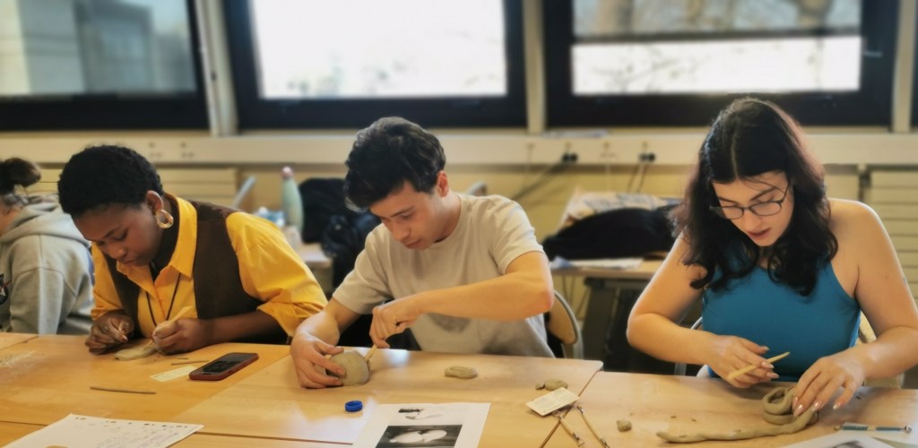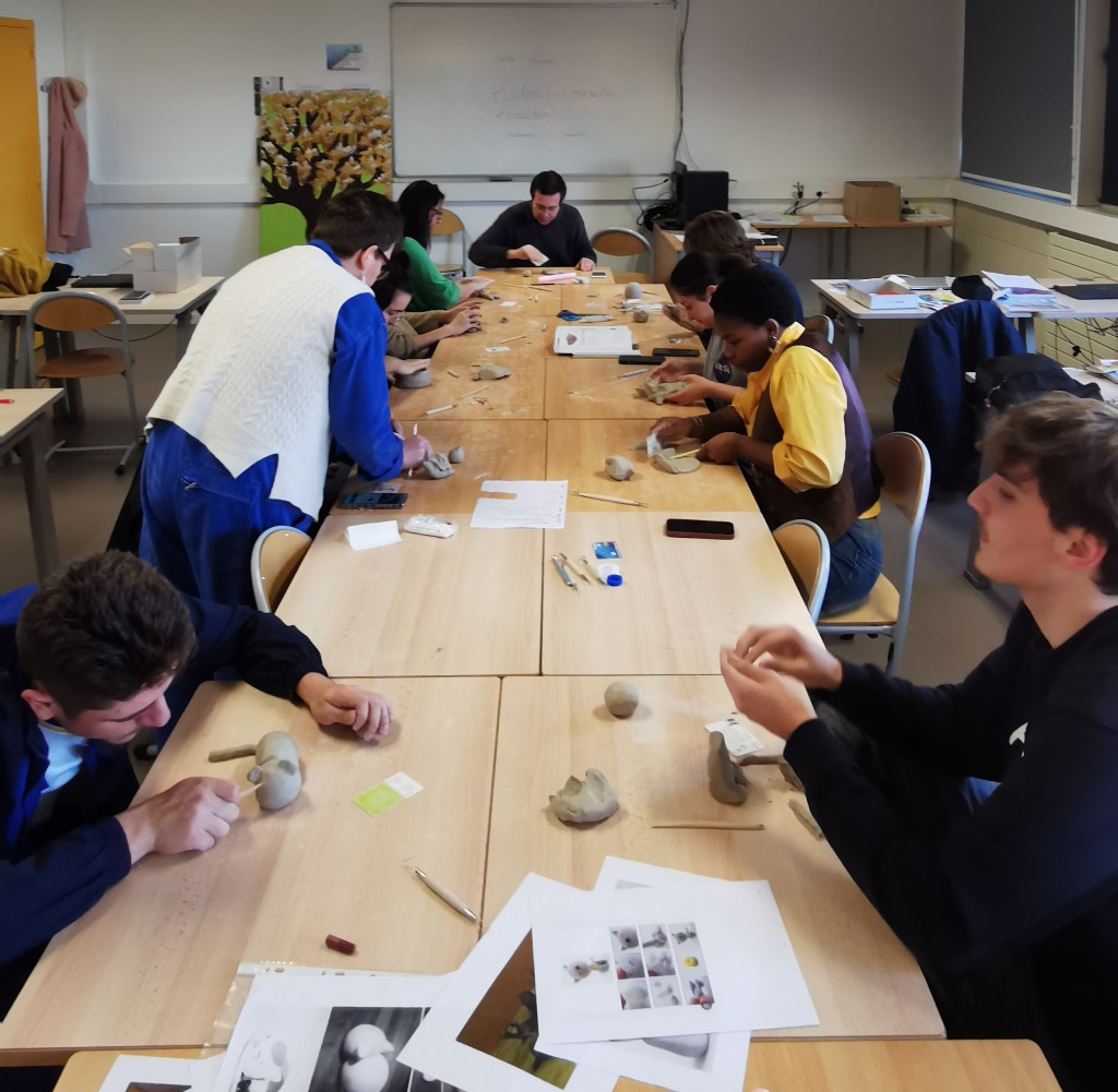 Deux ateliers de modelage ont été programmés à la demande des élèves de la classe de Terminale STMG. Et c’est Elodie Gardy- artiste plasticienne, déjà intervenue en 2022/23, qu’ils ont à nouveau sollicitée pour les encadrer et les accompagner. Se sont aussi invités quelques élèves de 1ère STMG… et des professeurs curieux!