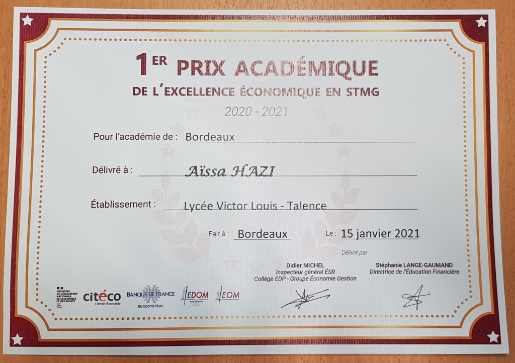 BRAVO à Aïssa HAZI jeune raccrocheur du MICRO-LYCÉE qui remporte le prix d’excellence économique !